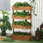 Outsunny Four-Tier Basket Wooden Plant Stand – Orange