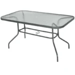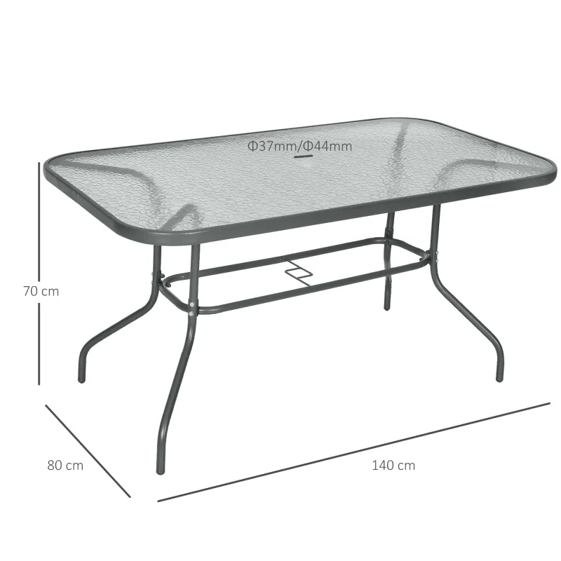 Outsunny Garden Dining Table Glass Top Metal Frame with Parasol Hole Outdoor Balcony Grey 140L x 80Wcm