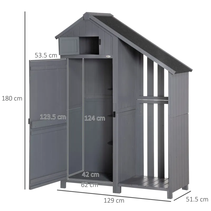 Whether you need open or closed storage for outdoors, Outsunny wooden sheds gives you both. The small wooden shed combines a closed storage section with door, open storage area and top storage box – plenty of room for garden equipment, tools and more. Made from fir wood, strong and durable – suitable for outdoor use. Asphalt cover on the slanted roof helps prevent water leaking through: helps prevent inside items getting wet. Complete with rotating block lock on the door for security.