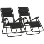 It’s time to lounge and relax with Outsunny. This set of two zero gravity chairs are here to elevate the body in a comfortable position, for you to soak up the sun all afternoon long. A powder coated steel frame for a strong core, the frame can be folded so you can carry and store it easily. Comes with a fabric seat, with padded top pillow to rest your head. The back is freely adjustable to any angle you want – with a lock to fix the chosen position in safely.