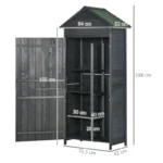 Outsunny Garden Shed 4-Tier Wooden Garden Outdoor Shed 3 Shelves Utility Gardener Cabinet Lockable 2 Doors – Grey