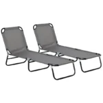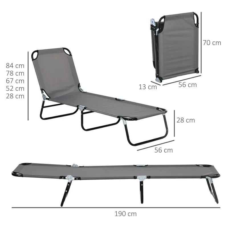 Outsunny Garden Sun Lounger, with Five-Position Back – Grey