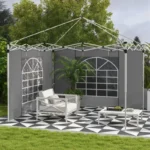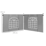 Outsunny Gazebo Side Panels, 2 Pack Sides Replacement, for 3×3(m) or 3x6m Pop Up Gazebo, with Windows and Doors, Light Grey