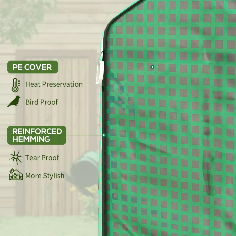 Outsunny Greenhouse Cover Replacement Walk-in PE Hot House Cover with Roll-up Door and Windows, 140 x 73 x 190cm, Green