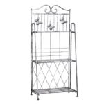 3-Tiered freestanding plant stand made of metal and featuring elegant scrollwork accent