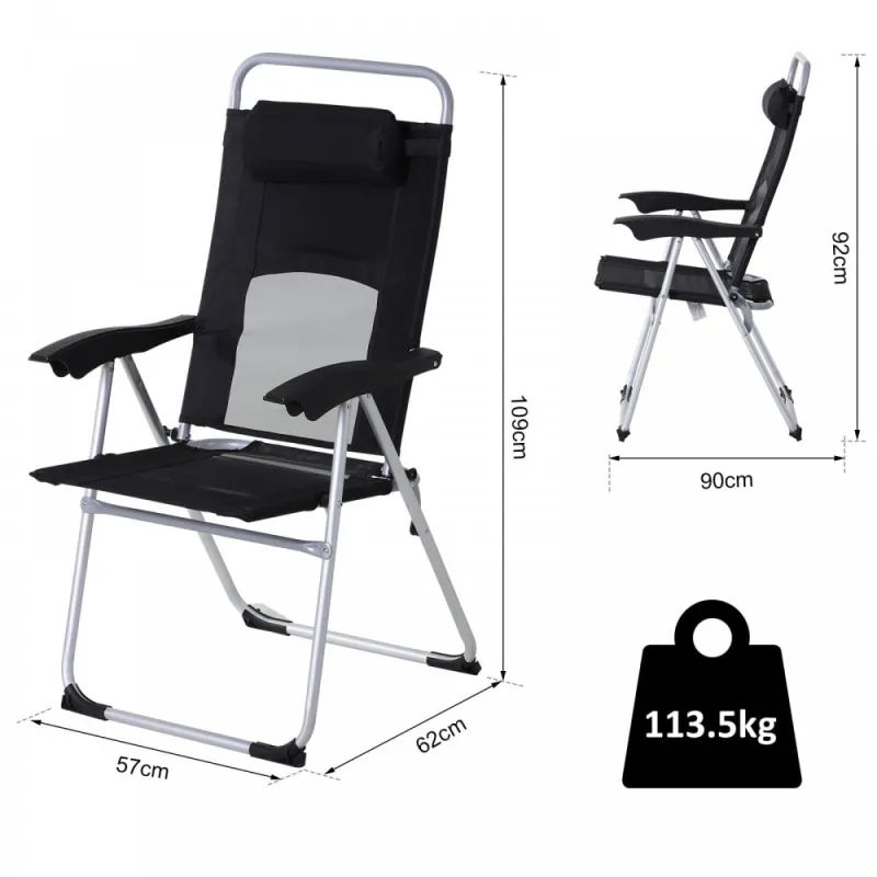 Outsunny Metal Frame 3-Position Adjustable Outdoor Garden Chair w/ Headrest Black