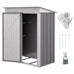 Outsunny Metal Garden Shed, Outdoor Lean-to Shed for Tool Motor Bike, with Adjustable Shelf, Lock, Gloves, 5’x3’x6′, Grey
