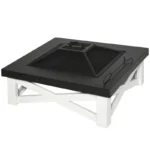 Outsunny Metal Large Firepit Outdoor 3 in 1 Square Fire Pit Brazier w/ BBQ Grill, Lid, Log Grate, Poker for Backyard, Camping, Bonfire, Wood Burning Stove, 86 x 86 x 38cm, Black