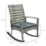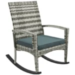 Outsunny Outdoor PE Rattan Rocking Chair, Garden Rocking Chair Set with Armrest and Cushion, Light Grey