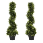 Bringing beautiful greenery into your home doesn’t get much easier than this. These 2 potted outdoor plants will liven up your space without maintenance. Come in a set of two, so you can create a matching look in the home and outdoors. Made from plastic for long-time use, the premium quality holds a realistic colour. The fake tree is tall, and the spiral shape adds to the beauty. Our indoor plants both come with a pot, so you have everything you need in the package.