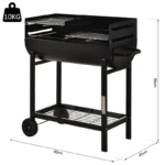 Outsunny Steel 2-Grill Charcoal BBQ w/ Wheels Black