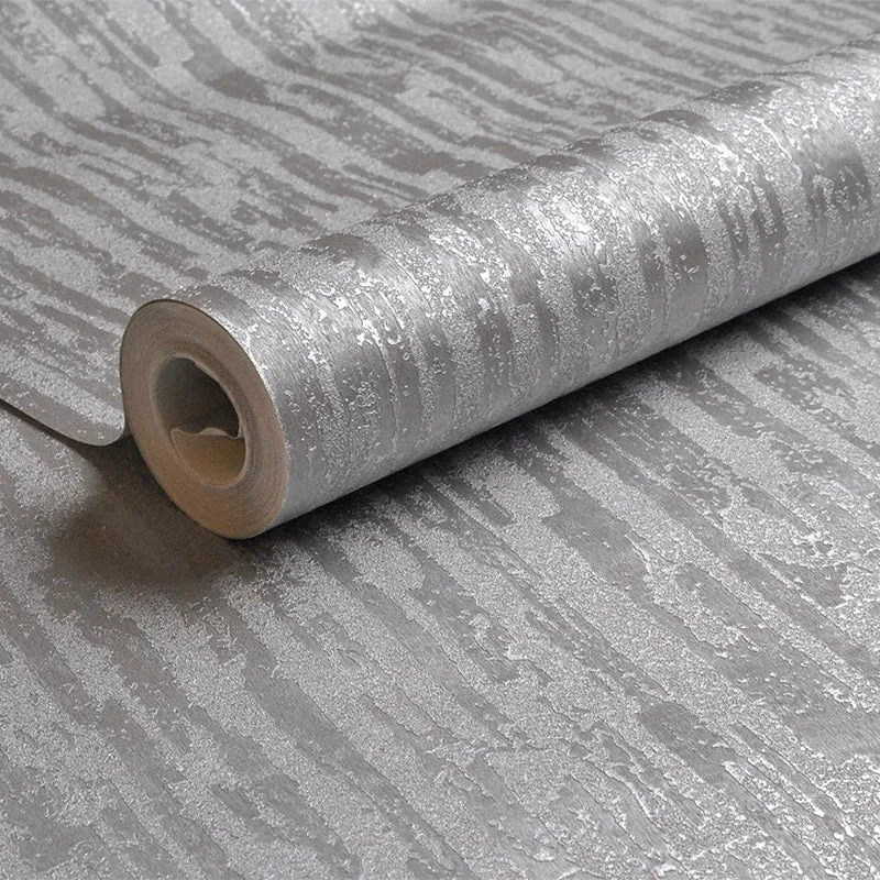 Transform your living space into a stylish haven with the Ovoin Metallic Silver Textured Wallpaper. This industrial, shimmering and plain wallpaper adds a touch of elegance to your home decor.
