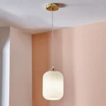 Pacific Lifestyle – Alessia White Glass and Gold Metal Ribbed Glass Pendant