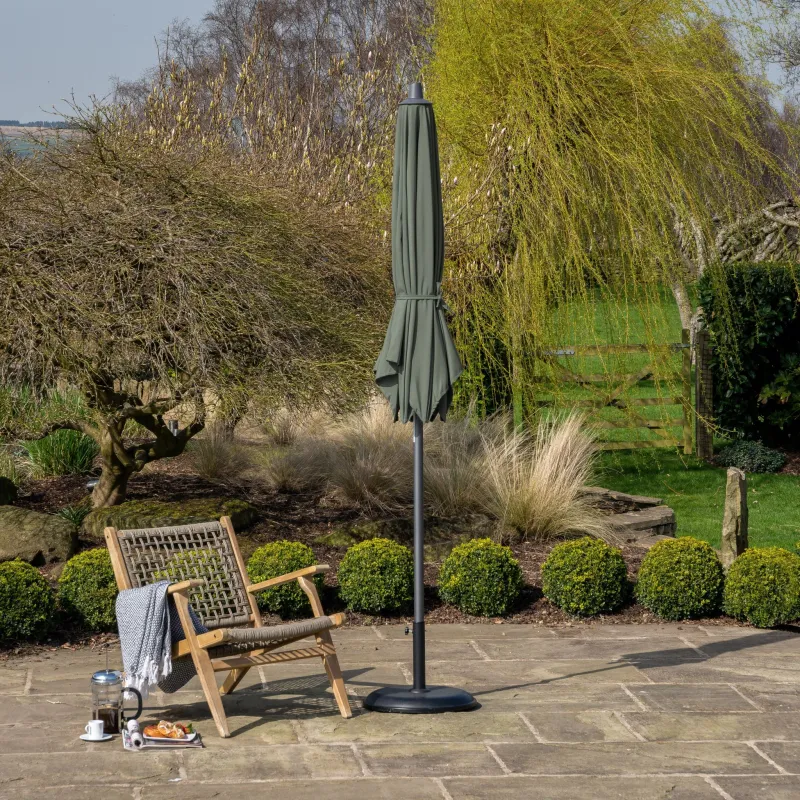 The parasol, in Green, is made from premium-class fabric, which is dirt-resistant protecting you from the elements and also the sun’s UV rays. We suggest using a cover to protect your parasol while not in use to maintain its quality, please see the Aerocover recommended below.