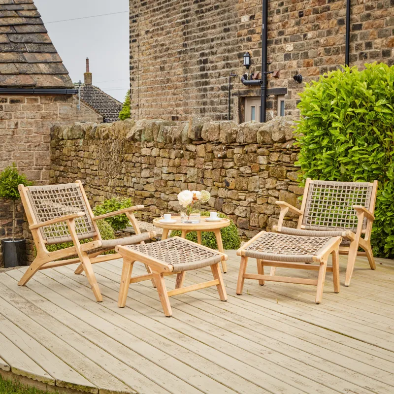 The Sesto is the perfect addition to any garden for those lazy sunny days. The stylish low chairs and footstools are suited to relaxing and finished in a natural Acacia wood. The material seat is both durable and waterproof and features an open weave design.