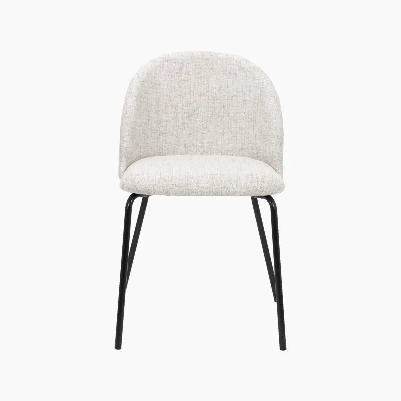 Enhance your dining experience with our Turi contemporary Dining Chair. The sleek black metal legs and curved back exude sophistication, while the Pebble Linen Mix upholstery adds a touch of modern luxury. Elevate your dining space with this elegant and comfortable addition.