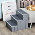 PawHut 3 Step Wooden Dog Steps Pet Stairs for Dogs