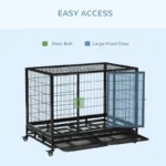 PawHut 43″ Heavy Duty Metal Dog Crate Pet Cage with Tray Wheeled Dog Kennel – Black Large
