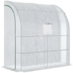 Experience year-round gardening with Outsunny’s walk-in wall greenhouse! Ideal for tropical plants and vegetables, with ample storage and ventilation. The transparent PE cover protects while allowing nourishing sunlight in. Rust-resistant steel tubing, guy ropes, and stakes ensure reliability. Zippered doors and roll-up windows allow for easy access and temperature control. Compact design with shelves for easy installation by your home or shed.