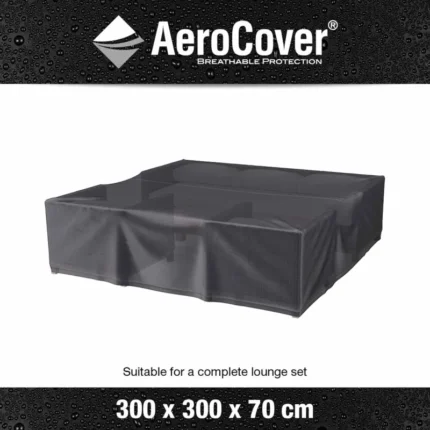 This Platinum AeroCover is designed to provide outdoor cover and protection for an L-shaped trapeze lounge set with dimensions up to 300x300x70cm (WxDxH), when not in use, all year round. Please refer to the graphic in the product images for approximate dimensions.