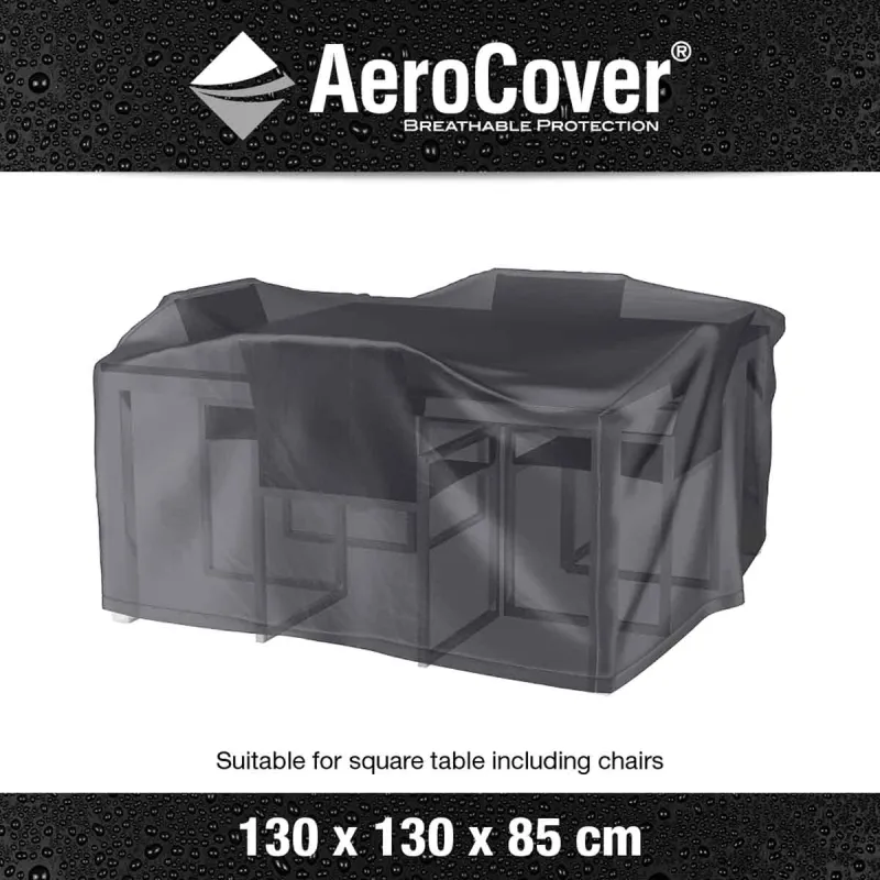 This Platinum AeroCover is ideal for square outdoor furniture sets, such as a dining table and chairs, up to 130cm diameter including chairs. This garden furniture cover is water-resistant, breathable, and provides UV protection. Storage bag included.