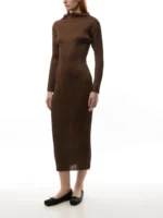 This brown pleated top has long sleeves and a wide mock neckline.NEW COLORFUL BASICS is a seasonless series that offers in a range of versatile, simple styles in mellow colours.