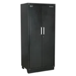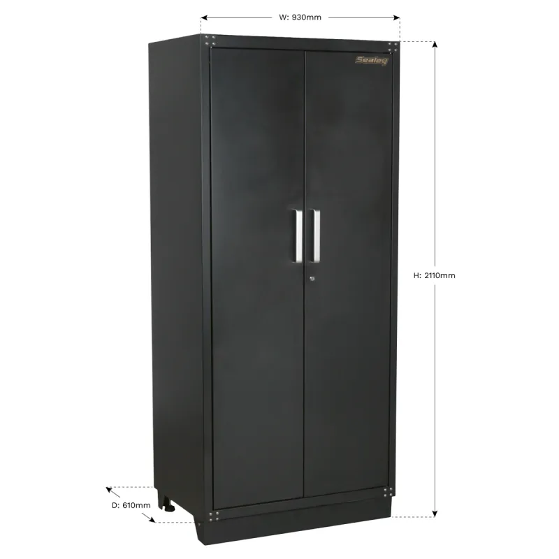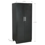 Use as part of a complete professional garage storage system or as an individual storage unit. All steel construction with a graphite powder coat finish. Heavy-duty full height two door cabinet. Three adjustable shelves. Four level-adjusting feet. Added security provided by cylinder lock, supplied with two keys. Requires some self-assembly. Supplied flat-packed for ease of transportation.