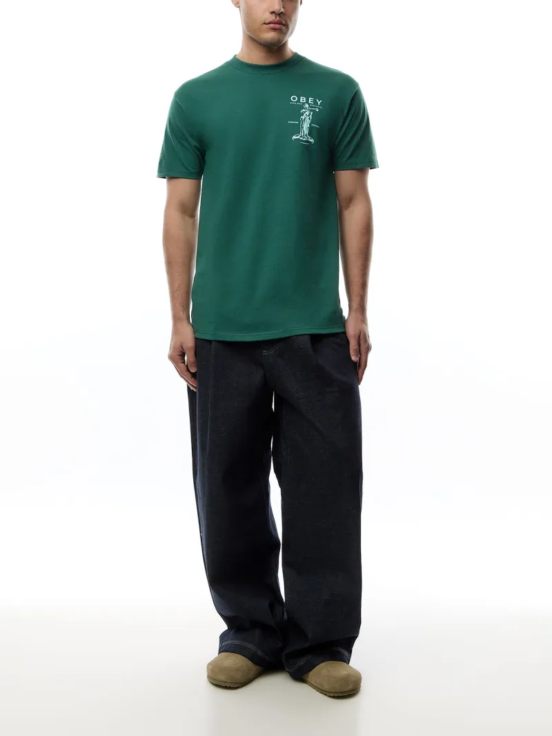 The Obey Premium Sounds Tee offers a classic style and comfortable feel with its 100% cotton fabric and regular fit. Featuring a printed graphic on both the front and back, this t-shirt is a stylish addition to any wardrobe. Made with 6oz fabric, it provides a lightweight and breathable wear.