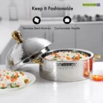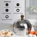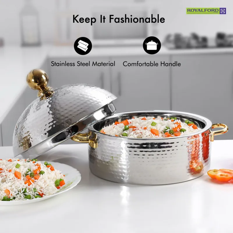 COMFORTABLE HANDLE – This Royalford Hot Pot has a high grip handle which will be easy to carry while serving from this classic design stainless steel dome hot pot.