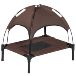 Raised Dog Bed Waterproof Elevated Pet Cot with Breathable Mesh UV Protection Canopy Coffee, for Small Dogs, 61 x 46 x 62cm