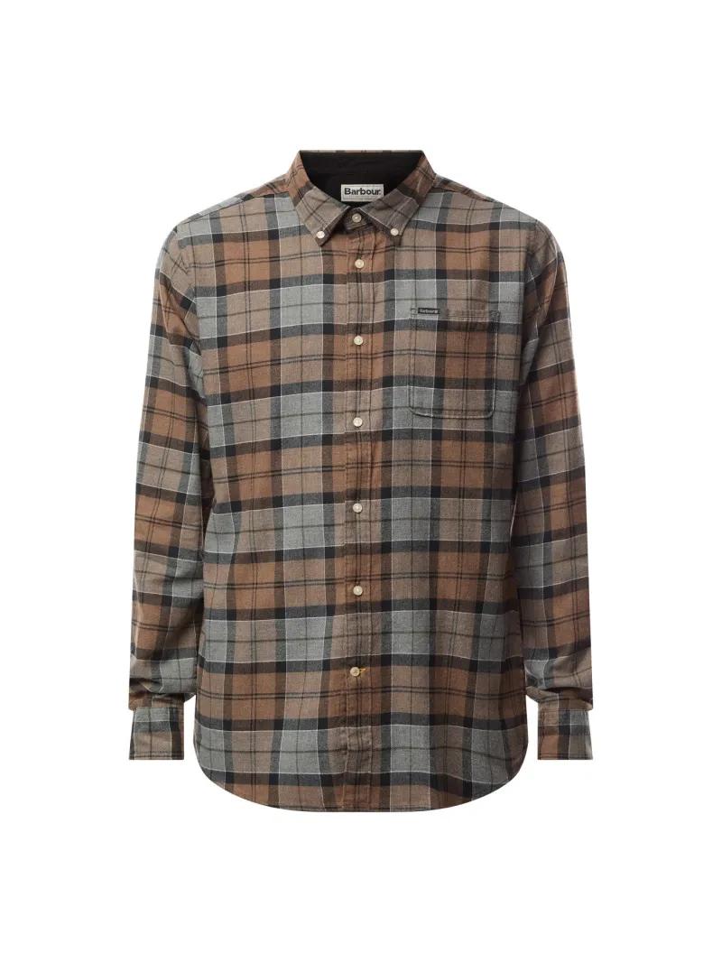 Made from 100% cotton for soft and comfortable wear, the shirt carries a mid-scale tartan print and is finished with a button-down collar and subtle Barbour branding to the chest pocket.