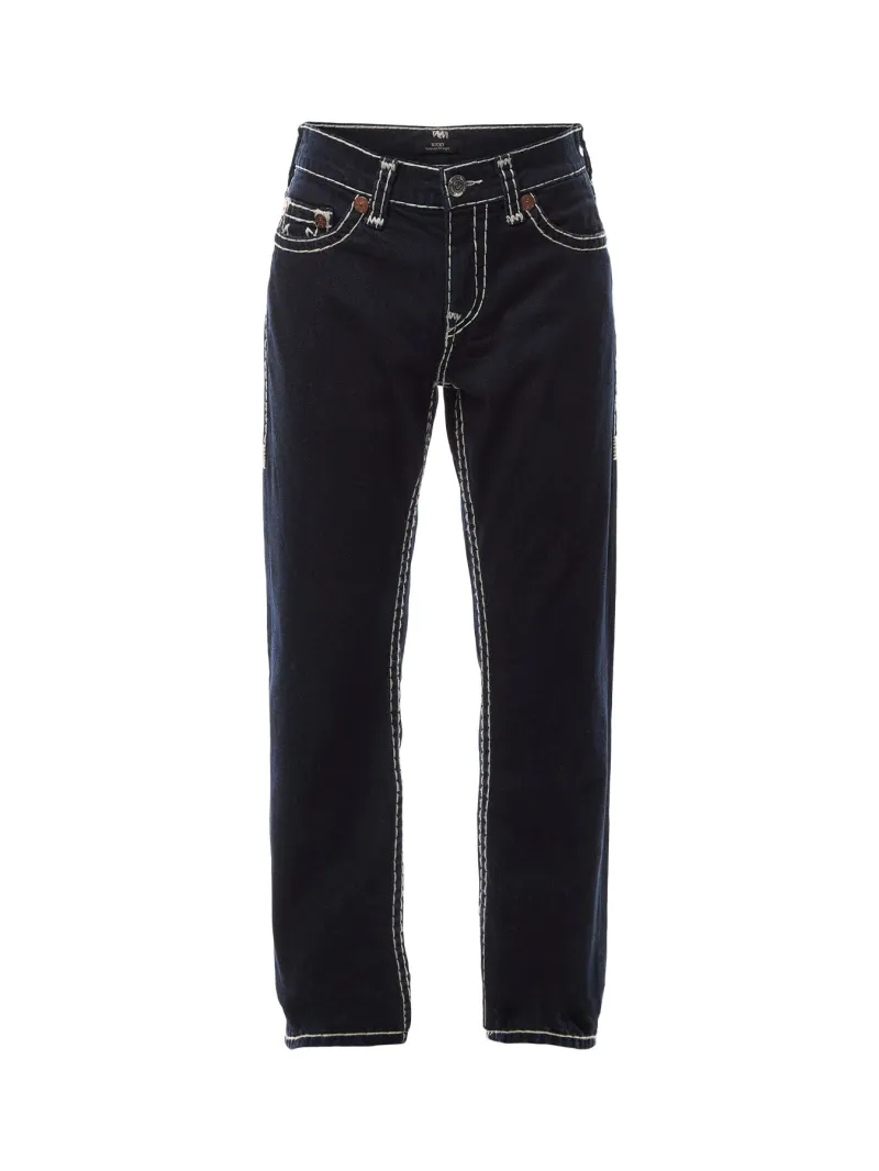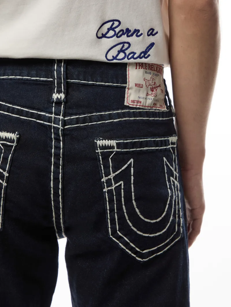 The Ricky Super T Jean is a true classic. Designed in a clean denim wash, this straight leg men’s jean features oversized hardware and contrast Super T stitching. Finished with 1/2 inch horseshoe detailing along the back pockets and our regular 34 inseam.