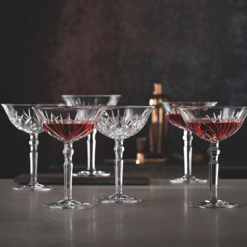 The Riedel Nachtmann Palais Cocktail Glasses – Set of 6 are a classic coupe shape with refined curves, these crystal glasses are perfect for serving cocktails, martinis, and sparkling beverages. Their vintage-inspired design offers a modern take on the traditional champagne coupe, making them a stylish choice for any occasion.