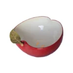 The ceramic bowl has an off-white interior and deep red exterior. We love the delicate leaf detail and golden pips at the bottom of the bowl. It’s deep and spacious – ideal for popcorn and other salty snacks.