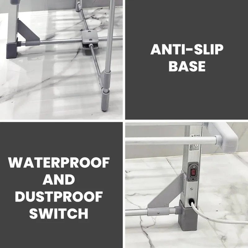 - GENTLE DRYING – Recommended for clothes. Electrically-heated rails for gentle, natural drying. 24 bars give plenty of hanging space for your clothes.