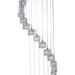 Bring an exciting modern edge to any home with the exquisite Ice Cube multi-drop pendant that will look fantastic above a stairwell or within any entrance hall. The pendant stands at 3m total height and from this, 20 LED lights drape in a stylish manner from a chrome ring attached to many mild steel cords. The ice cube glass shades have a textured slight dimpled effect to create the effect of an ice cube. LED’s use up to 75% less energy and last up to 20 times longer than incandescent bulbs.