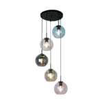 The Mardi Gras II 5Lt Multi-Drop Pendant combines timeless elegance with a vibrant burst of colours. Designed with precision from mild steel and glass, this pendant displays the perfect blend of durability and style. It features a striking design with globe/sphere-shaped shades in blue, champagne, pink, and smoked colours. These shades bring a lively and dynamic element to the pendant, creating a captivating focal point in any room. The glazed finish adds a touch of allure to the pendant, creating a glossy and reflective surface that enhances the overall brightness. This glossy finish contributes to a vibrant and inviting atmosphere, making it perfect for both relaxation and entertaining guests. The spherical shades not only provide comprehensive illumination but also serve as a focal point and statement piece, drawing attention and becoming a conversation piece in any home. Height adjustable, this multi-drop pendant will work for both hallways and living spaces alike.