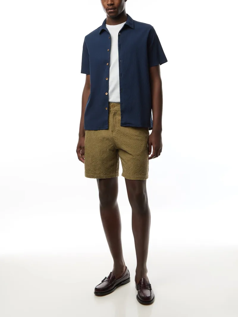 Made from 100% cotton with a textured pattern finish, this short-sleeve shirt features a garment-dyed tone. Cut for a relaxed casual-fit, this shirt is finished with pearlescent buttons and a straight cut hem.