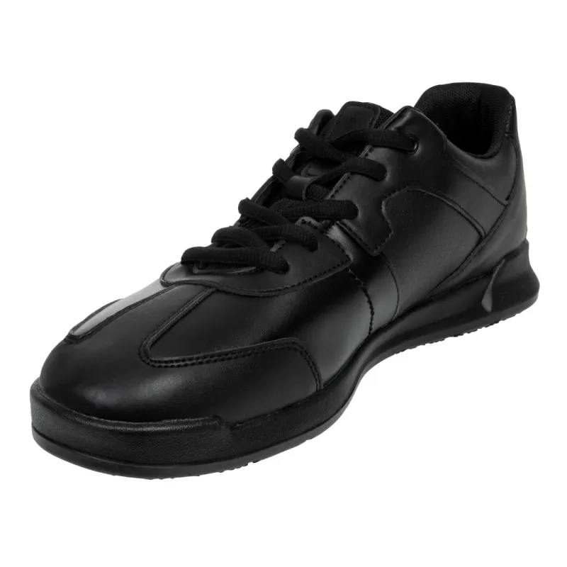 Prioritise comfort alongside style, with these size 38 black freestyle trainers by Shoes for Crews. These trainers are crafted with a highly durable and easy to clean synthetic leather, that provides protection for your feet whilst being breathable and helping to keep you cool – perfect for wear in a busy kitchen.