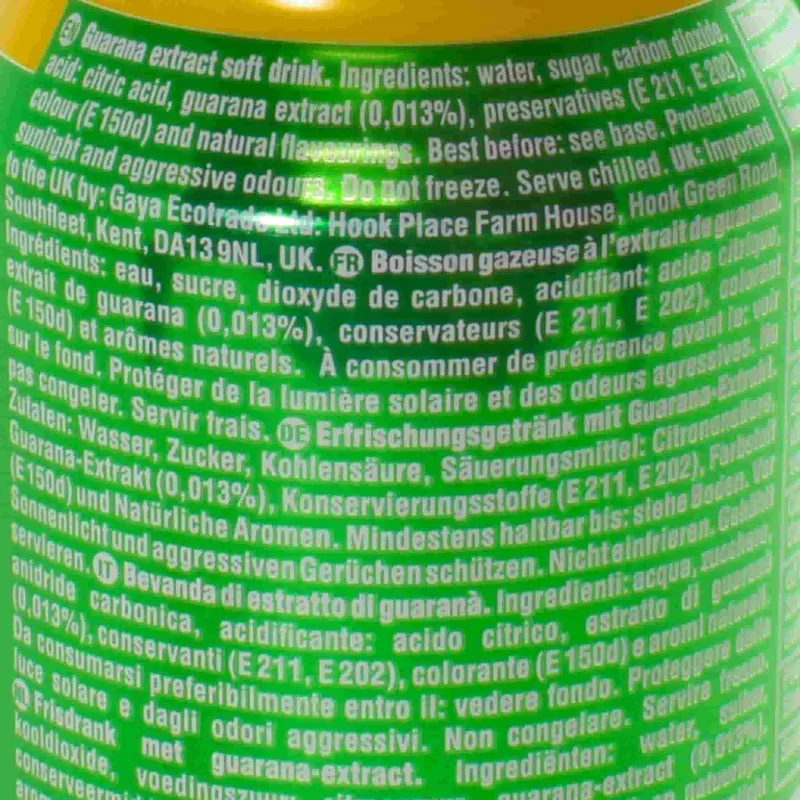 Product formulations and details may change. For the latest ingredients and allergen information always check product packaging prior to consumption. Ingredients: Water, sugar, carbon dioxide, acid: citric acid, guaraná extract (0.013%), preservatives: (E211, E202), colour: caramel (E150d), natural flavourings.