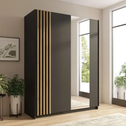 Boris Sliding Door 120cm Wardrobe with Mirror – Black, White, Graphite