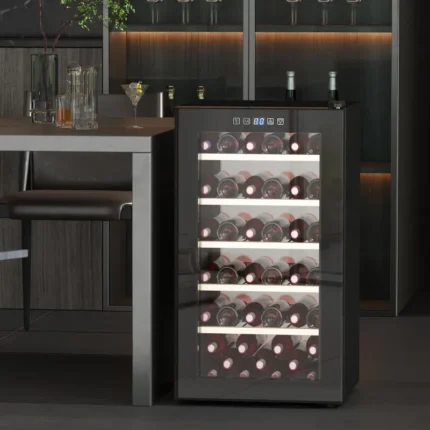 HOMCOM 41 Bottle Wine Fridge, 91 Litre Capacity, 45cm Freestanding Wine Cooler Fridge with Glass Door, LED Light, Digital Touch Screen, Temperature Control, Black