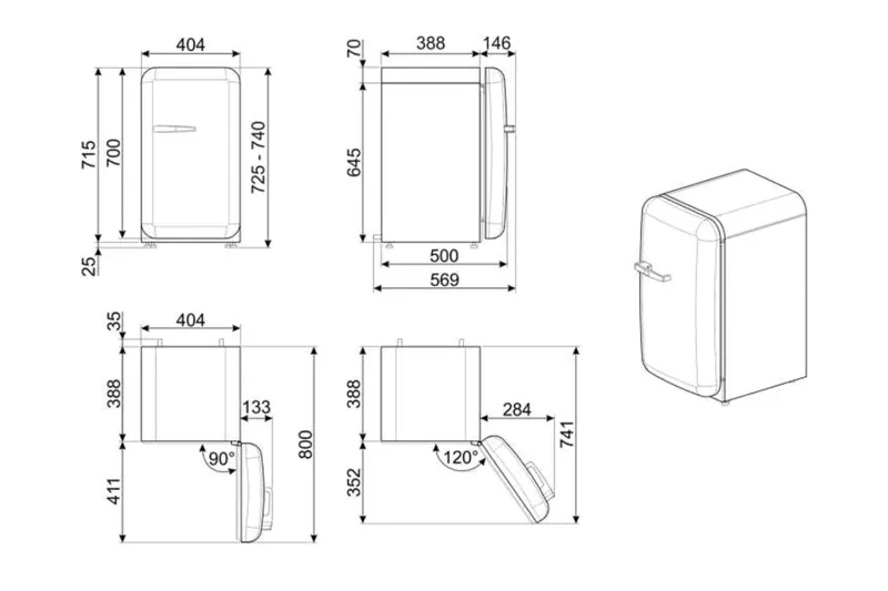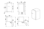 The fridge’s features include an adjustable thermostat, 2 shelves which can be interchanged over 7 heights, a bottle holder and snack compartment in the door, internal LED lighting, easy-to-clean surfaces, a right-hand or left-hand hinged door with chrome handle and a 40L-net internal capacity.