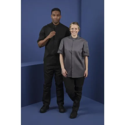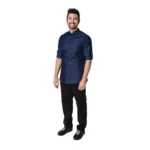Modern denim chef jacket suitable for the whole team. Smart and fashionable. Cut specifically for a longer length through the body and a slimmer arm.