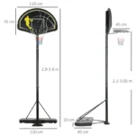SPORTNOW 2.3-3m Basketball Hoop and Stand with High Strength PE Backboard and Weighted Base, Portable on Wheels