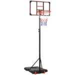 Enjoy shooting hoops with this SPORTNOW kids Basketball hoop and stand. It has an adjustable height, making it suitable for all ages – everyone can join the fun. A steel frame for strength and durability, whilst the base can be filled with water or sand, keeping it firmly in place. Wheels at the bottom let you move the stand easily. Play on your own or with others