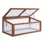 This wooden cold frame from Outsunny can be a perfecct choice for you to take care of your lovely plants. Wooden greenhouse lean to creates a reliable little house. Transparent polycarbonate panels allow maximum light transmission while retaining heat in this cold frames for garden clearance or for protecting plants late in the season. This grow house wooden provides an environment with ideal temperature, your plants can enjoy the sunlight and grow healthily in the wood greenhouse.