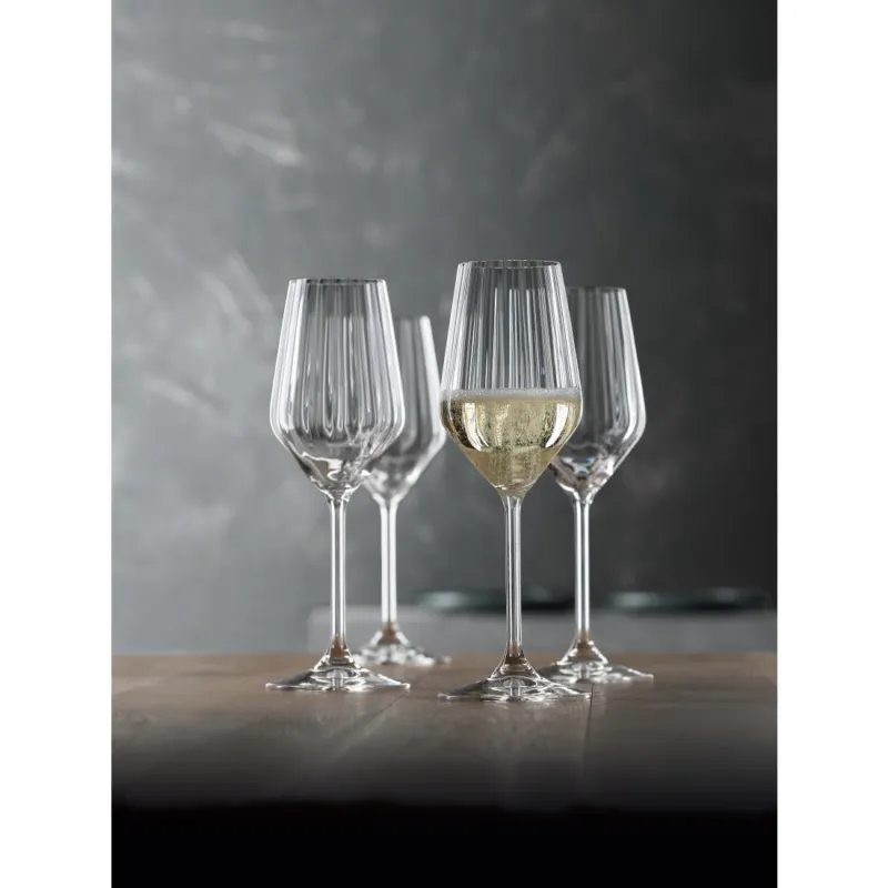 Spiegelau’s Lifestyle champagne glass is at home wherever lifestyle and fashion meet. Their modern diamond shape is emphasized once again by the linear decoration.