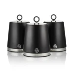 Home Home, Furniture & DIY:Cookware, Dining & Bar:Kitchen Storage & Organisation:Canisters & Jars Swan Serenity Black Tea Coffee Sugar Canisters Set Polished Steel Accents