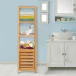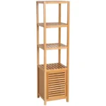 This HOMCOM tower combines style and functionality for beautiful storage, perfect for the bathroom and beyond. Its tall and slightly narrow design is ideal for fitting into tighter spots, featuring three large open shelves and one bottom cupboard for plenty of storage. Slatted on the shelves and the cupboard door, plenty of air is allowed to pass through to keep everything fresh, with four stump feet for balance to finish.